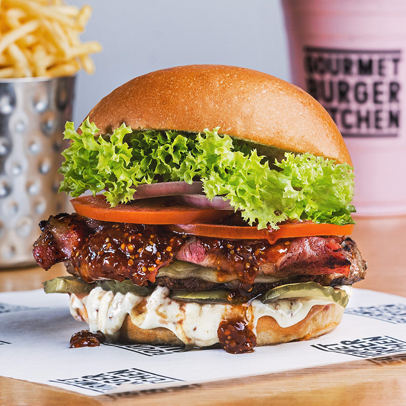 ·1 embrião de hambúrguer. ·Torta de carne Yongyou 150 gramas por peça. ·2 fatias de bacon. ·2 fatias de alface. ·1 tomate. ·Papaya azeda 2 peças. ·1 fatia de queijo gouda. ·Ketchup com moderação. ·Mostarda de mel com moderação. | Etapa 1: Descongele o pattie de carne um dia antes, coloque em uma fritadeira a 200 ℃ por 5 minutos, vire e cubra com fatias de queijo (fatias de queijo) e asse por mais 3 minutos. Etapa 2: rissóis de carne assada enquanto frita bacon. O bacon de Sam é branco, não é necessário óleo e forçar suavemente a graxa no calor mínimo. Frite o bacon até ficar enrolado e marrom. Tem um gosto o mesmo, mesmo que você o frite na manteiga. Etapa 3: Mergulhe a alface em água salgada, corte o tomate e o mamão azedo. Etapa 4: Fritar levemente as fatias de tomate e hambúrguer em óleo de bacon. Etapa 5: Escorra a alface, corte a alça verde dura e clara, não apenas o sabor bonito é melhor. Etapa 6: Coloque o molho de mostarda e tomate mel nos dois hambúrgueres e monte -os na ordem do fundo do hambúrguer - alface - fatia de mamão azeda - Patty de queijo - bacon - alface - fatia de tomate - topo do hambúrguer e conserte -os com palitos . |